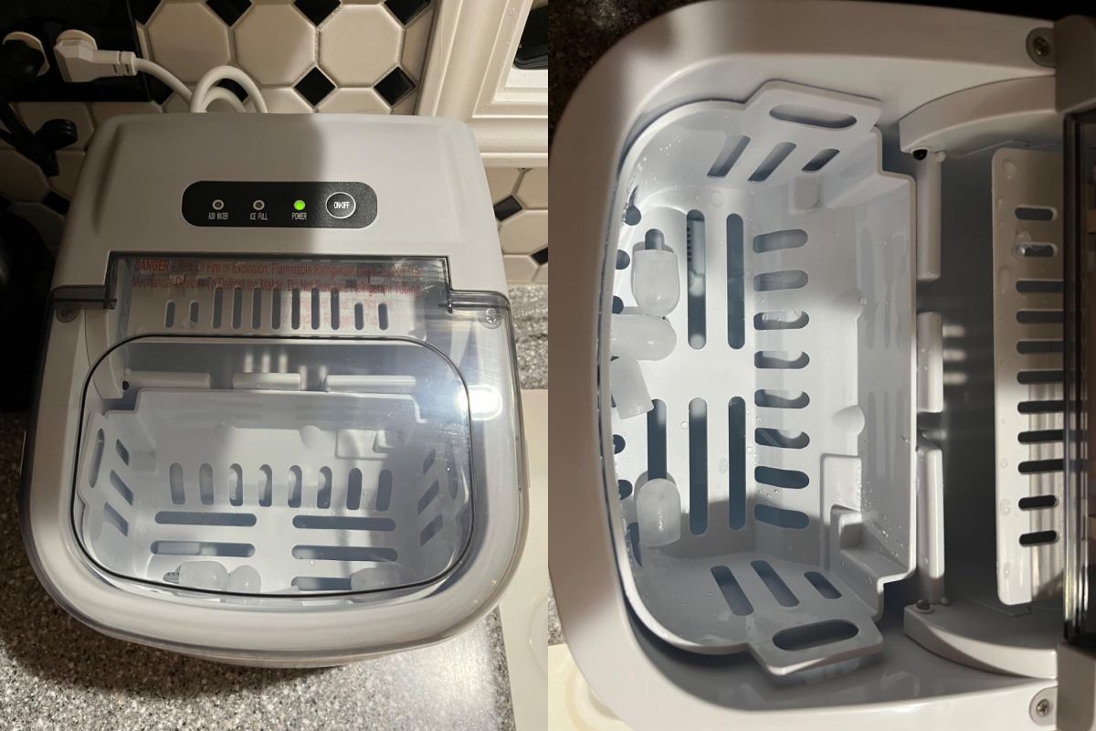 Based on other reviews I was worried about the need to clean it frequently but there’s no visible sign of mold yet. I think the combination of frequent use and having a big BlueAir purifier in the kitchen as well helps tremendously. I’ve noticed my air purifier seems to keep a lot of mold out of the air and prevents it from growing on food and surfaces like inside this ice maker. The fan makes noise, nothing obnoxious or distracting but if you’re standing next to it while someone’s talking to you from another room, you might not hear them clearly. It doesn’t bother me.