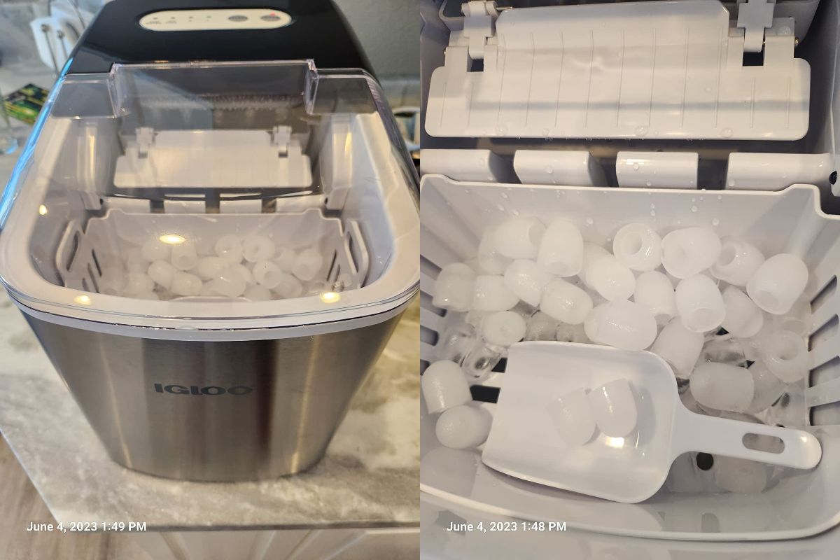 Helpful Review: I almost returned this when my wife pointed out it doesn’t make Sonic style ice but so far I’m really glad I kept it! My household uses a lot of ice. Our fridge ice maker is defective so I got this as an alternative. I got the red one because the copper one that some reviews mentioned as a better model took longer to deliver. I have been using the large ice setting, I haven’t tried the small size yet. I love the simplistic looking design, you can see exactly how it makes the ice. So I’ve had this for a month now, plugged in and going. I’m not sure if I’m really supposed to run it overnight but I’ve left it going.